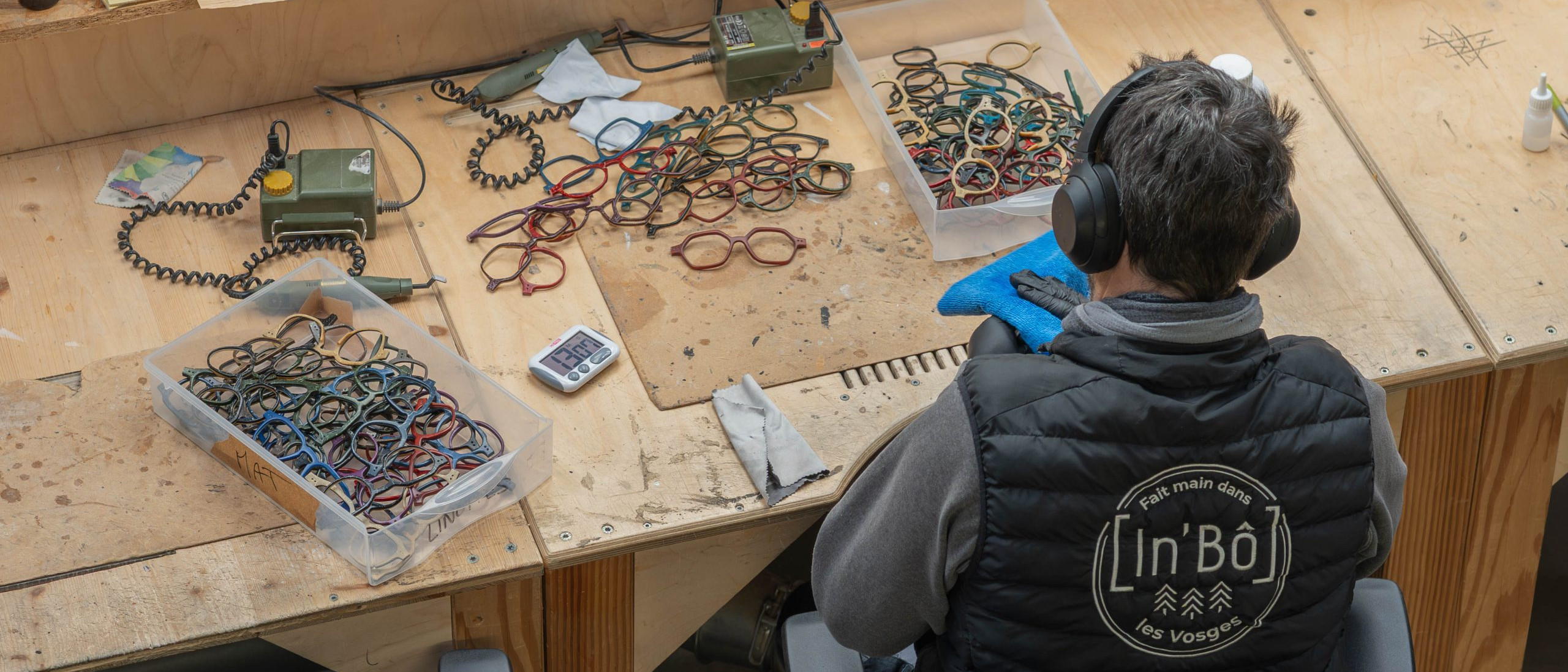 Chaque artisan lunetier maîtrise l’ensemble du processus de fabrication de A à Z. C’est un procédé où l’artisanat côtoie l’ingénierie. Il faut plus de 36 étapes pour fabriquer une paire de lunette Linotte.