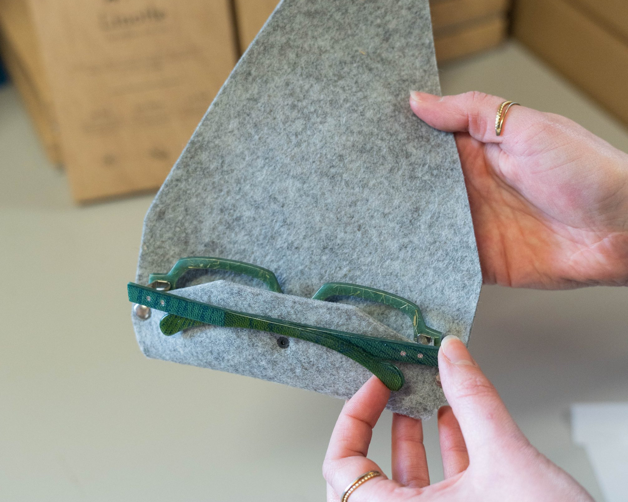 Pour accompagner vos lunettes en lin Linotte, nous avons créé des étuis en feutre artisanaux, pensés et fabriqués dans notre atelier vosgien. Chaque étui est découpé, façonné et assemblé à la main, pour offrir une protection optimale à votre monture tout en restant écologique et élégant.